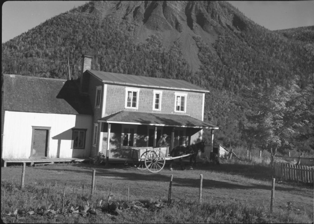 Mont-Saint-Pierre : un homme conduit un tombereau devant une maison