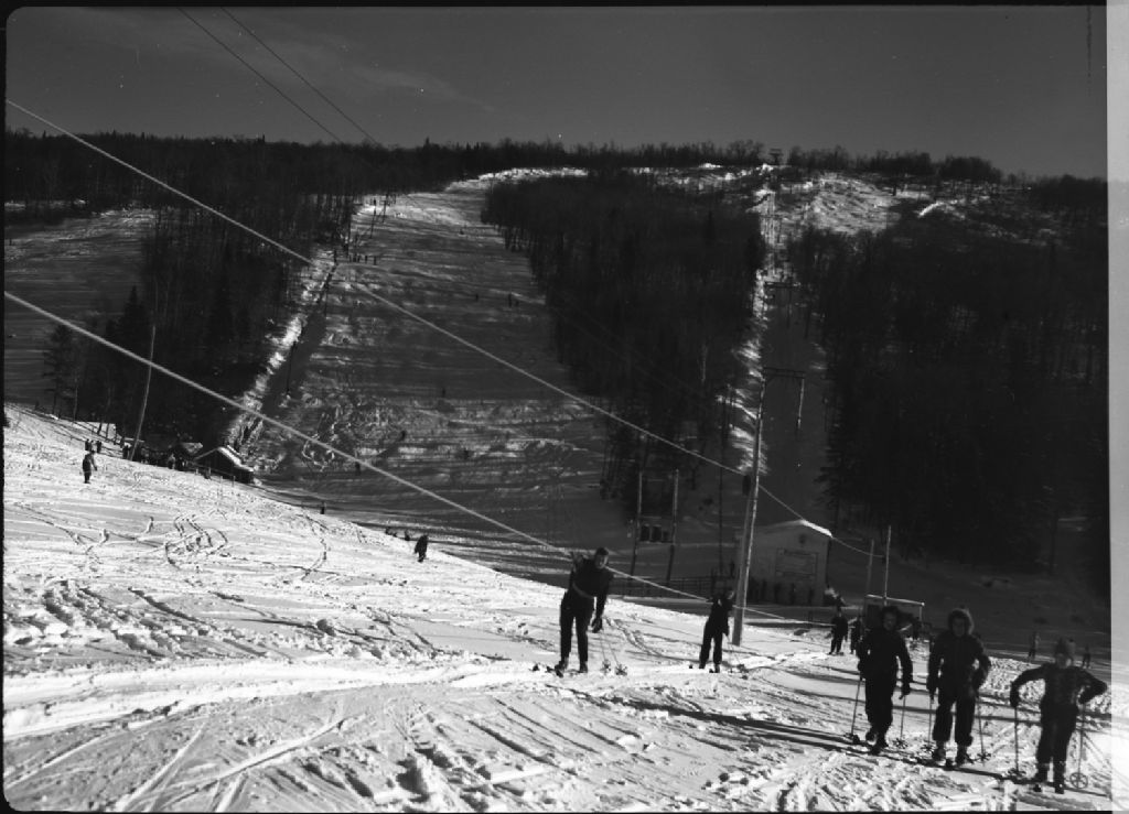 Remonte-pentes et skieurs, Lac Beauport, vers 1950, Archives nationales à Québec, Fonds George A. Driscoll, (03Q,P630,S14,D65951), George A. Driscoll.