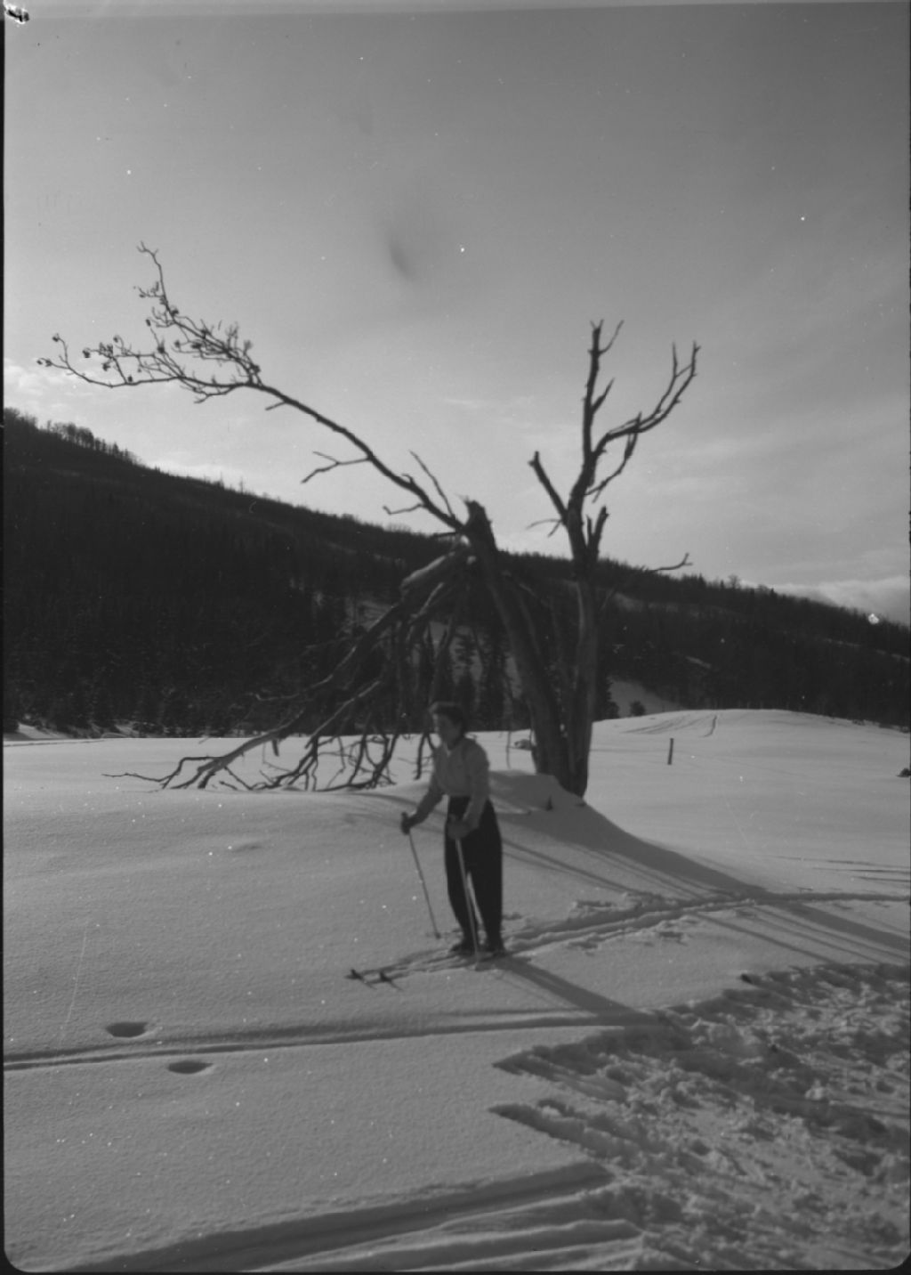 Skieurs près d'un arbre mort, Lac Beauport
