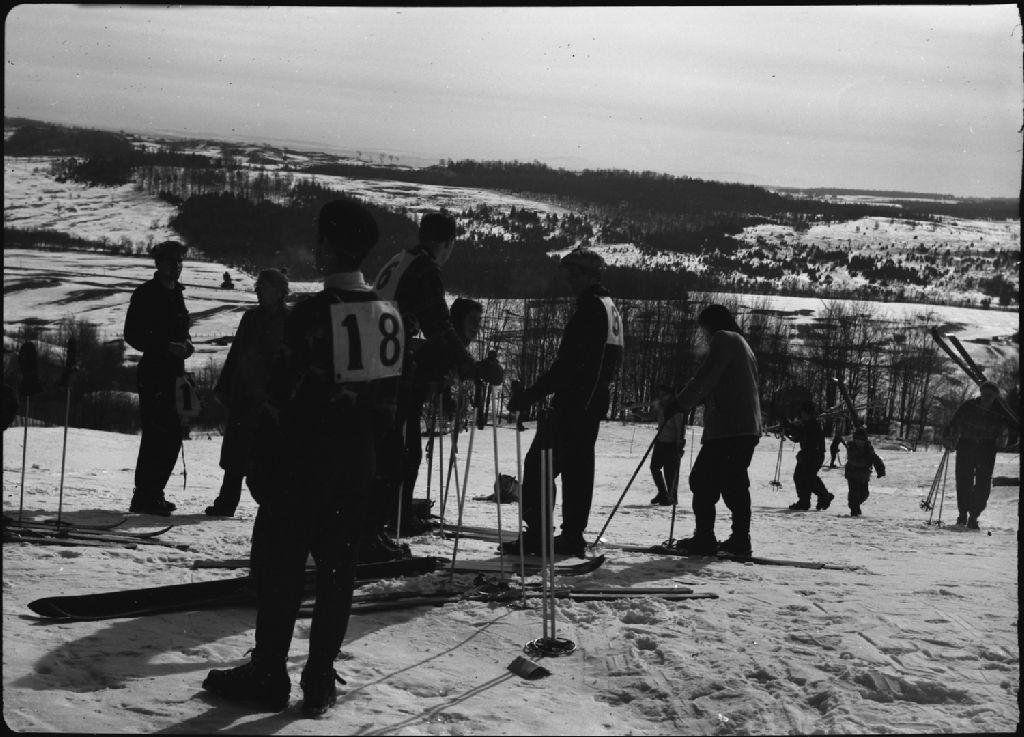 Skieurs portant des dossards. Lac Beauport, vers 1950, Archives nationales à Québec, Fonds George A. Driscoll, (03Q,P630,S14,D84951), George A. Driscoll.