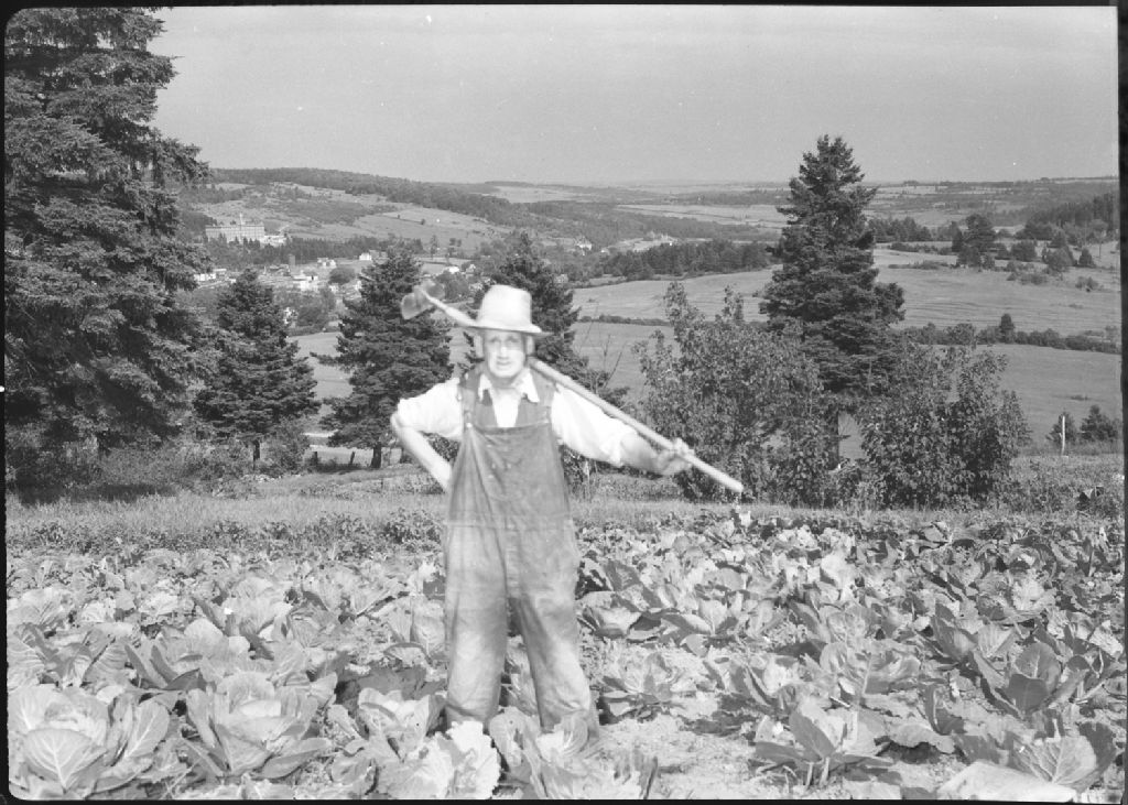 Beauceville : agriculteur dans un champ de choux, Vers 1950, Archives nationales à Québec, Fonds George A. Driscoll, (03Q,P630,S16,D249), George A. Driscoll.