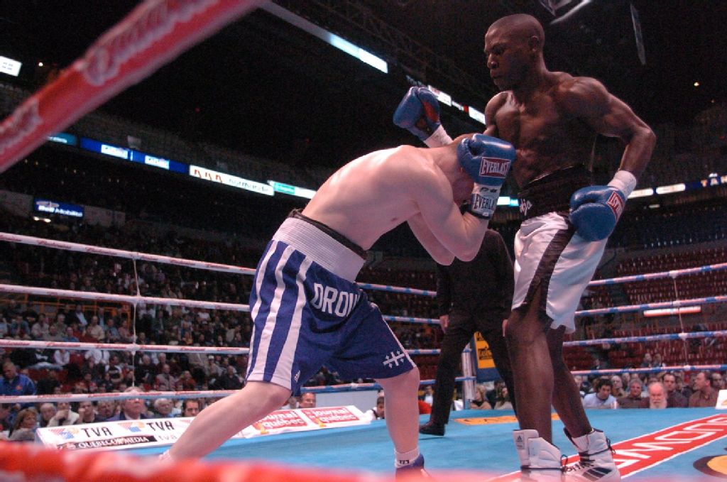 Le boxeur Herman Ngoudjo. Combat contre Dave Drouin au Colisée Pepsi à Québec.