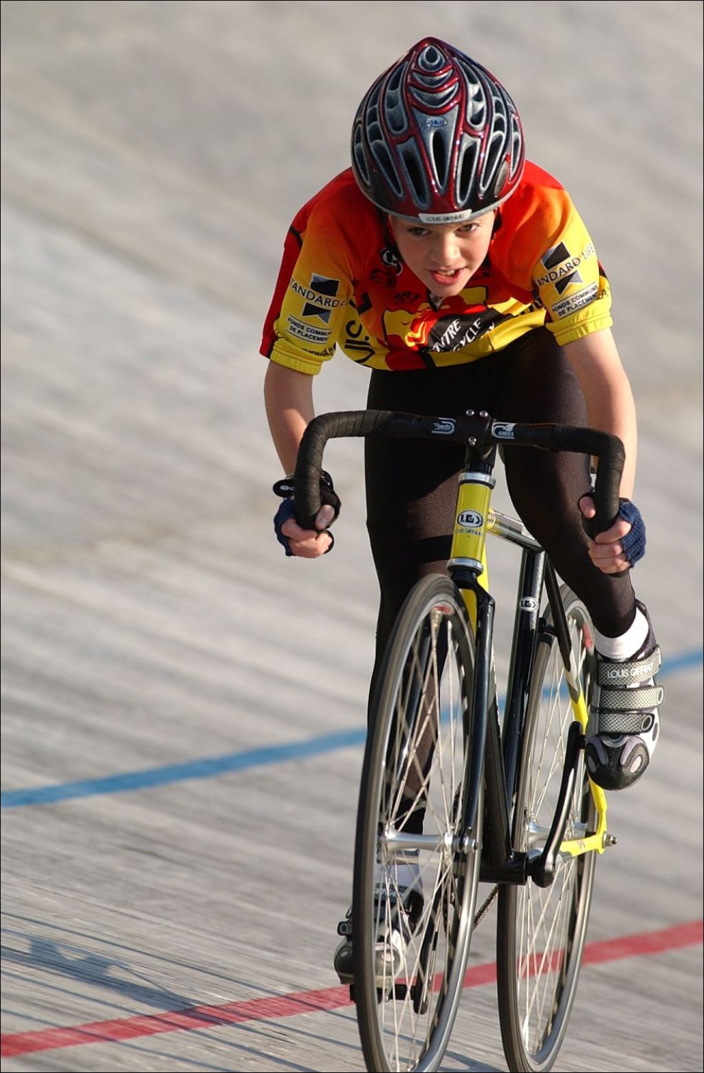 - Cyclistes au vélodrome Louis-Garneau, à Saint-Augustin de-Desmaures, sur les terrains du campus Notre-Dame-de-Foy.