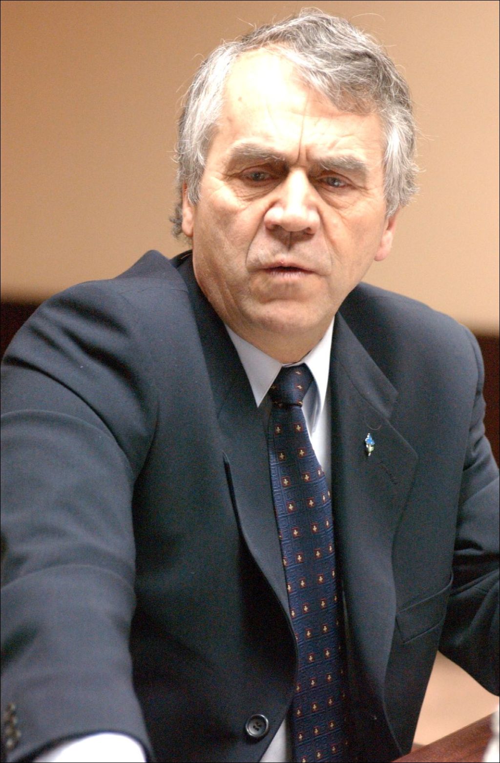 François Gendron, ministre des Ressources naturelles, 13 février 2003, Archives nationales à Québec, Fonds Steve Deschênes, (03Q,P863,S2,D1124), Photographe non identifié.