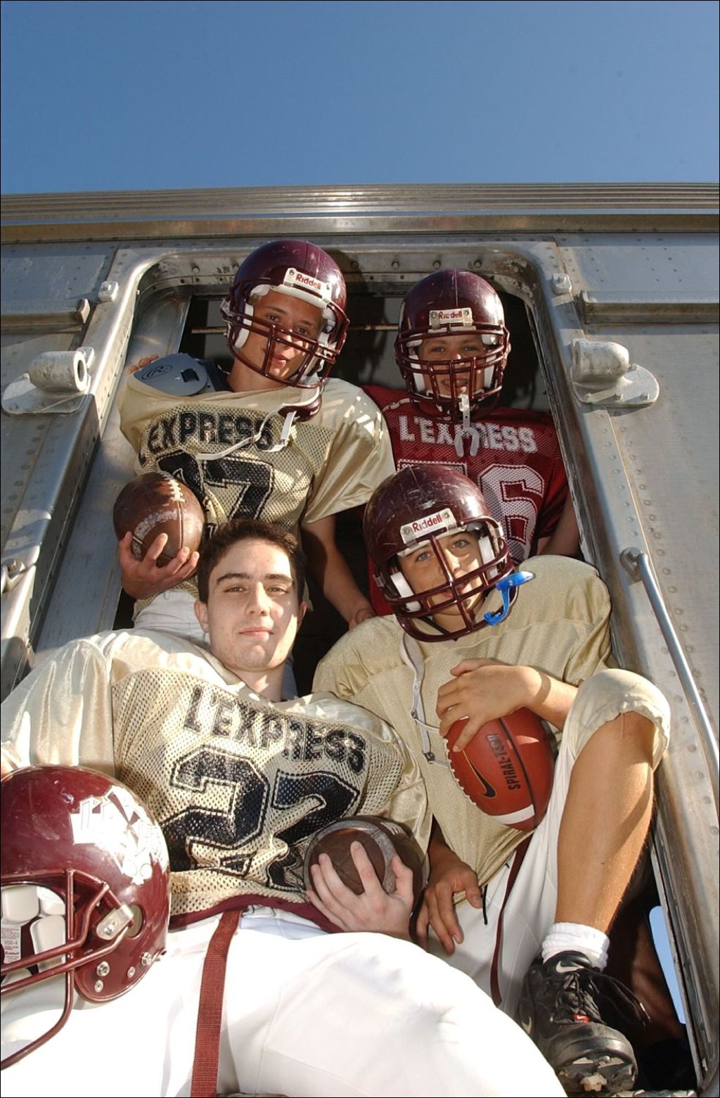 Joueurs de football de L'Express du Collège Saint-Charles-Garnier, 2003, Archives nationales à Québec, Fonds Steve Deschênes, (03Q,P863,S2,D1795), Photographe non identifié.
