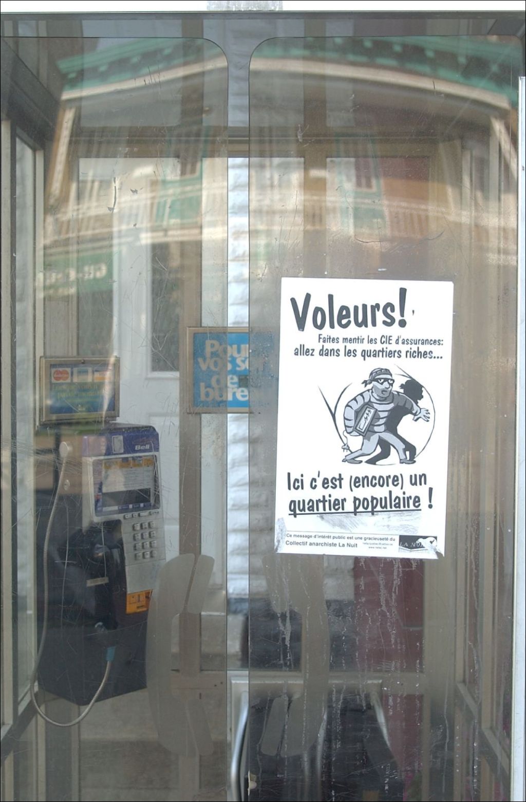 Affiche «Voleurs» produite par le Collectif anarchiste La Nuit, 2003, Archives nationales à Québec, Fonds Steve Deschênes, (03Q,P863,S2,D1820), Photographe non identifié.