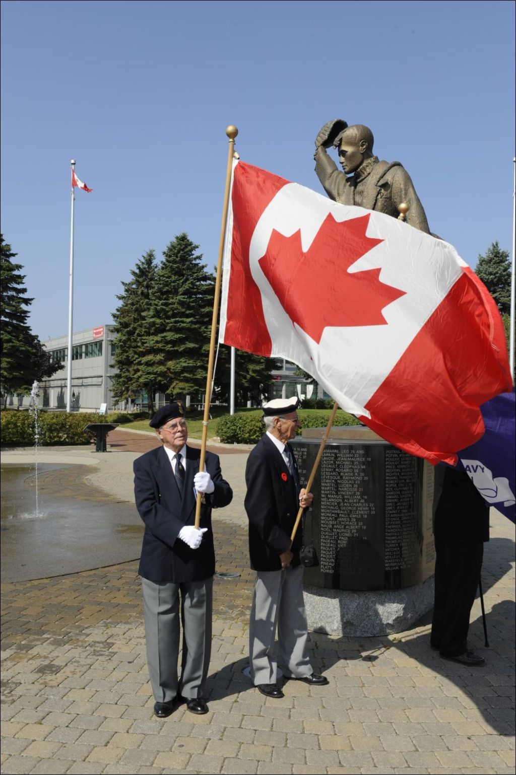 Anciens combattants de la marine marchande lors d'une cérémonie de commémoration pour le 70e anniversaire de la mort de la première victime de la Seconde Guerre mondiale., 2009, Archives nationales à Québec, Fonds Steve Deschênes, (03Q,P863,S2,D6789), Photographe non identifié.