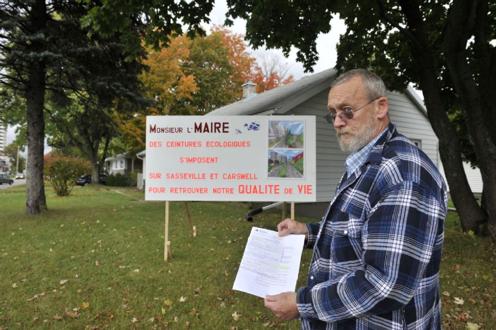 Un groupe de résidants de Sainte-Foy, dont un homme nommé Jacques Villeneuve, proteste contre la circulation automobile sur le boulevard Laurier