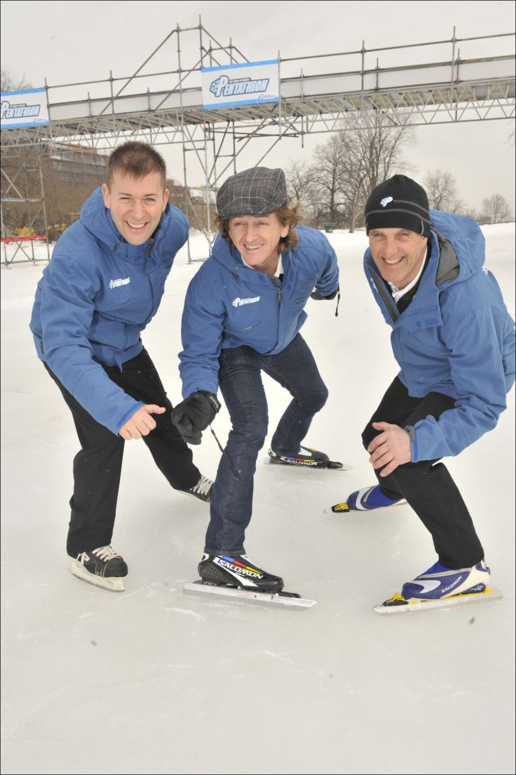 Le président d’honneur du Pentathlon, Sylvain Légaré, le commanditaire Yves Jacques et l’idéateur Jean-Charles Ouellet, 2010, Archives nationales à Québec, Fonds Steve Deschênes, (03Q,P863,S2,D7428), Photographe non identifié.