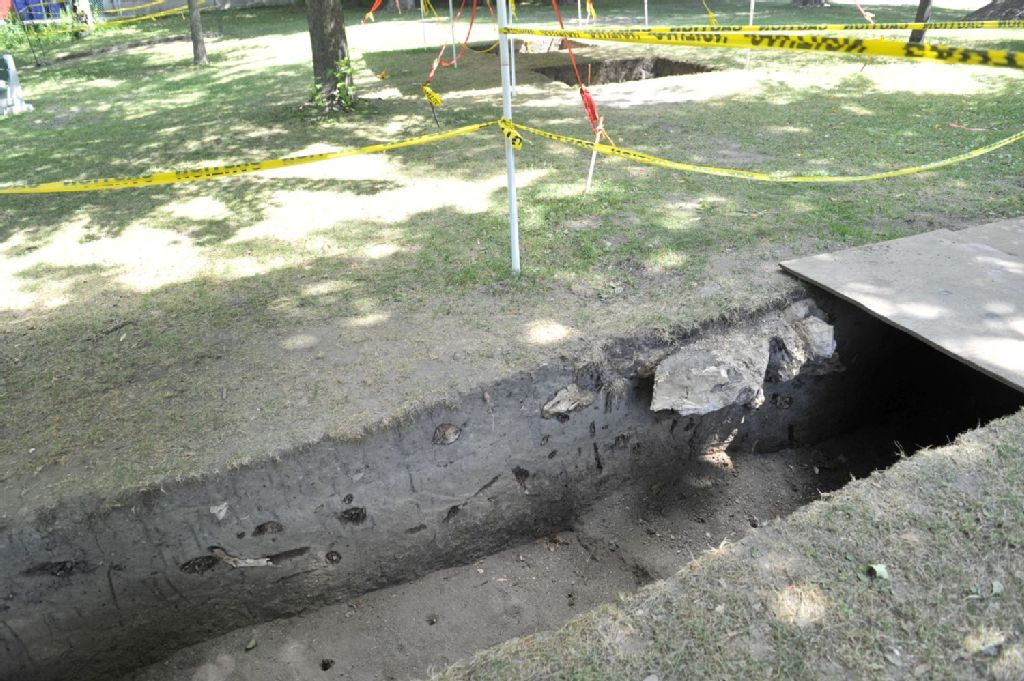 Fouilles archéologiques au parc des Braves, 2010, Archives nationales à Québec, Fonds Steve Deschênes, (03Q,P863,S2,D7578), Photographe non identifié.