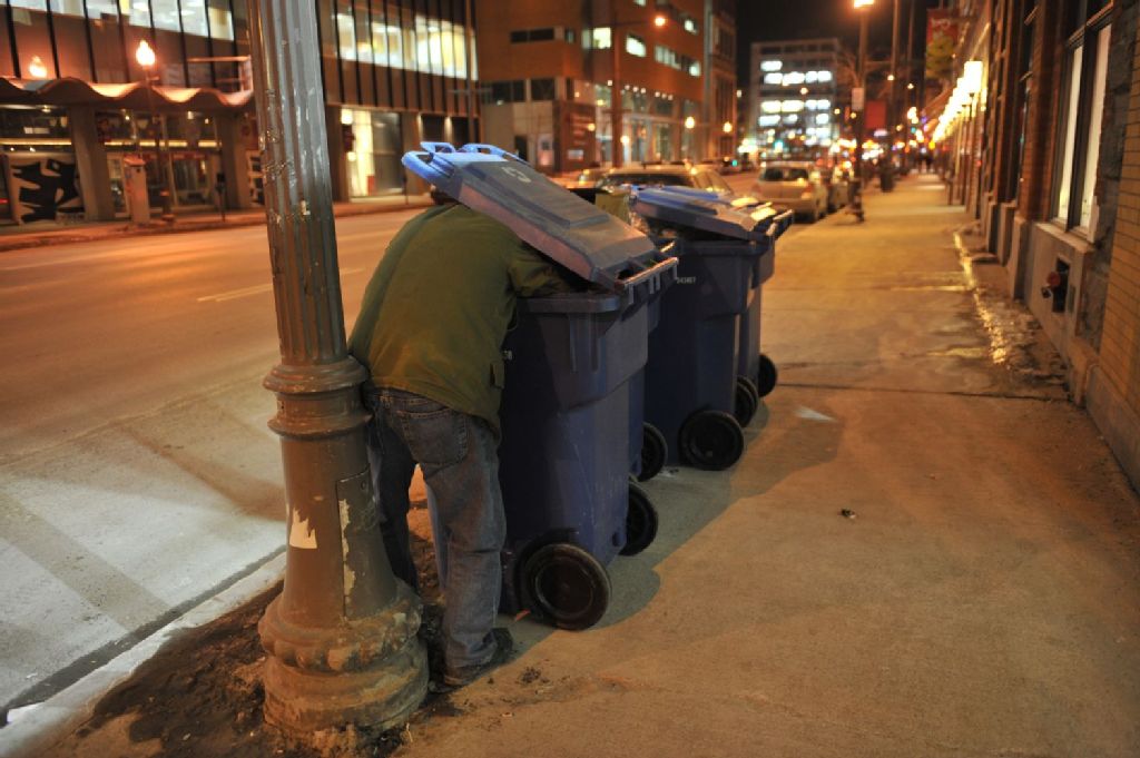 Une personne fouille dans un bac de récupération, 2011, Archives nationales à Québec, Fonds Steve Deschênes, (03Q,P863,S2,D8160), Photographe non identifié.