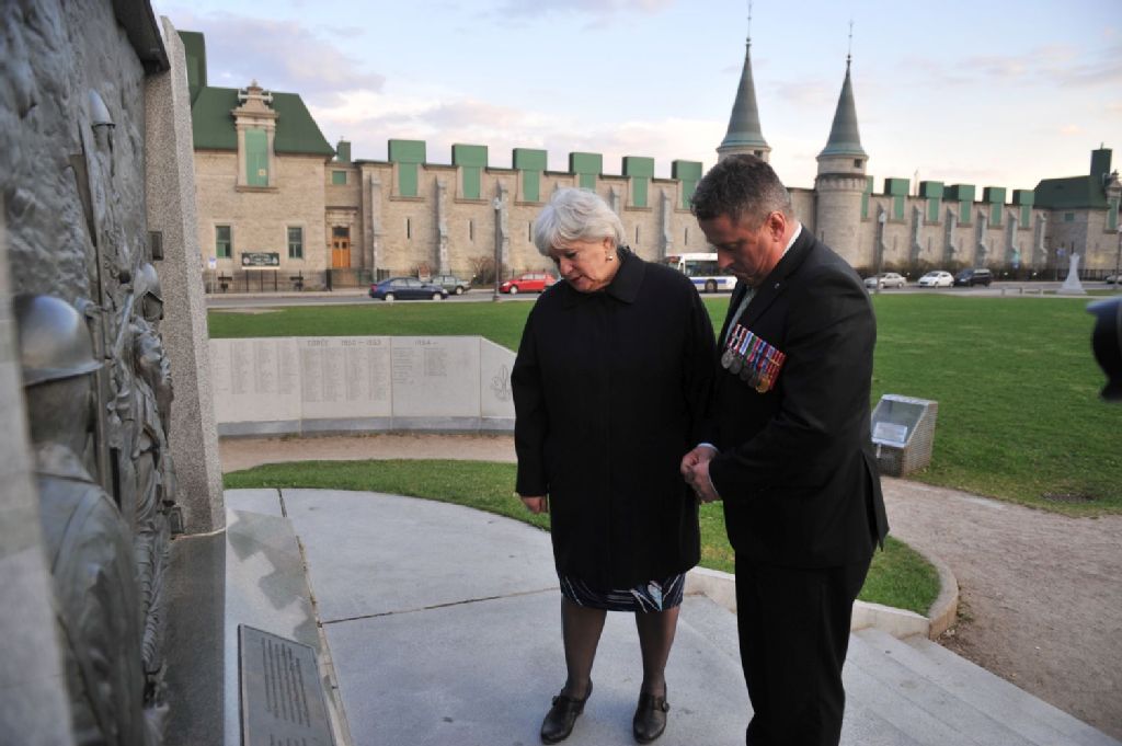 - Des gens se recueillent devant un monument de la Place George-V