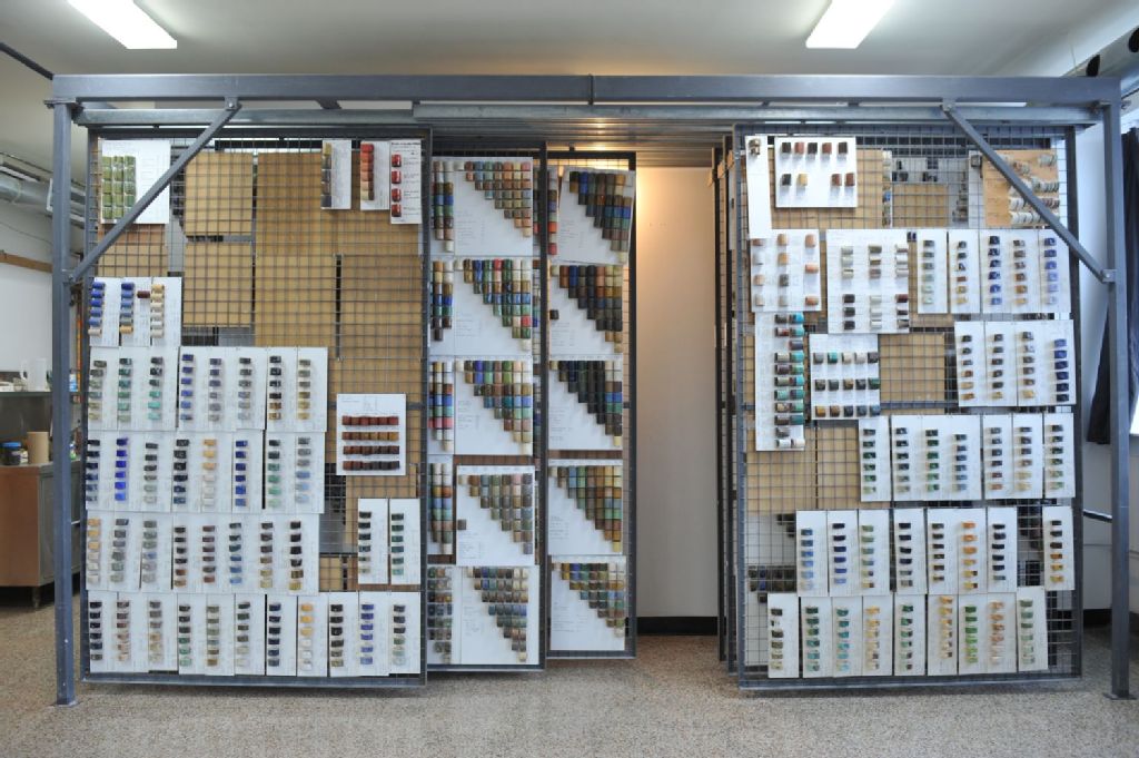 - Des tessons qui sont fixés par petits groupes sur des planches par des étudiants en céramique