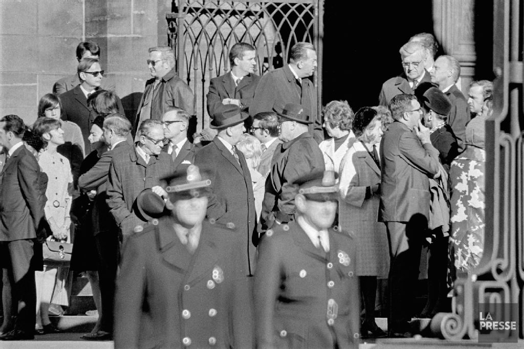 - Le dossier porte sur les reportages intitulés : Funérailles de Pierre Laporte à la basilique Notre-Dame ; Entrevue avec la chanteuse Michèle Richard ; Rapport du coroner relativement au décès de Pierre Laporte ; Pratique des Alouettes de Montréal à l'Autostade. Les documents montrent notamment les badauds et la présence de militaires à l'extérieur de la basilique Notre-Dame pendant les funérailles du défunt ministre, [le coroner Laurin Lapointe?], ainsi que le joueur de football Charlie Collins