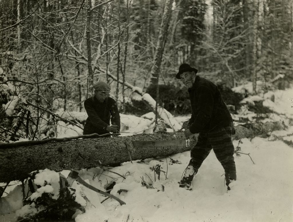 Deux hommes coupent un arbre au godendard