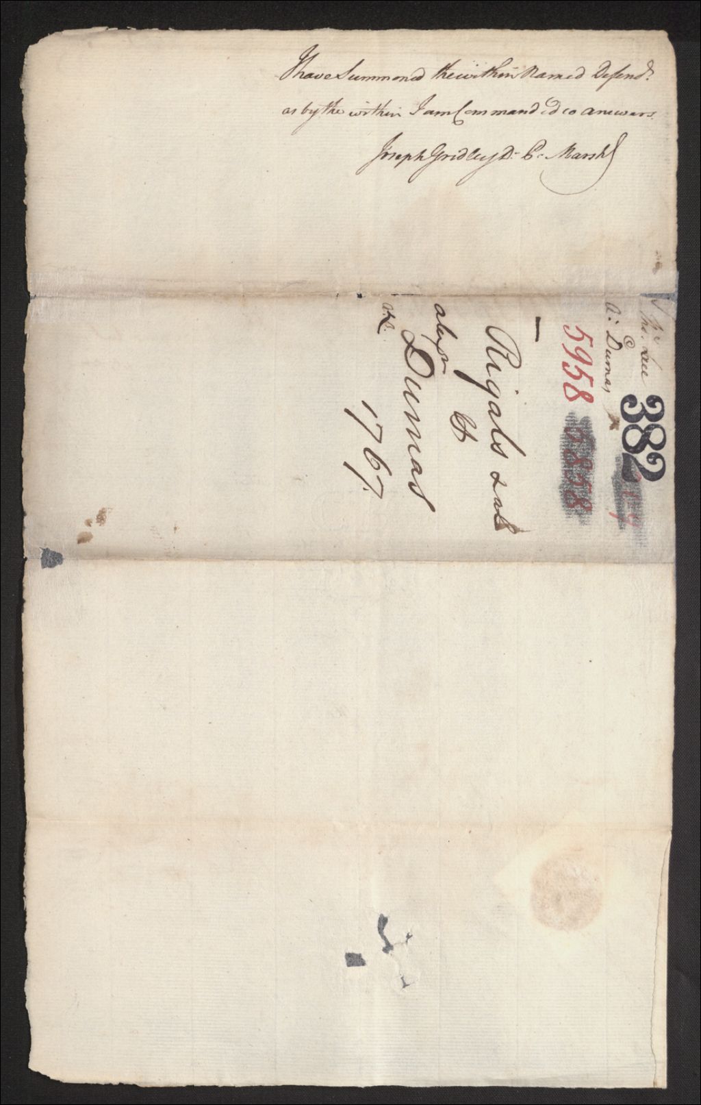 - Ce dossier en matières civiles provient de la Cour des plaidoyers communs. Il comprend un exploit d'assignation de Alexandre Dumas, suivant la requête de Thomas Lee (Lees), réclamant la somme de 16 495 livres, 7 sols et 5 deniers