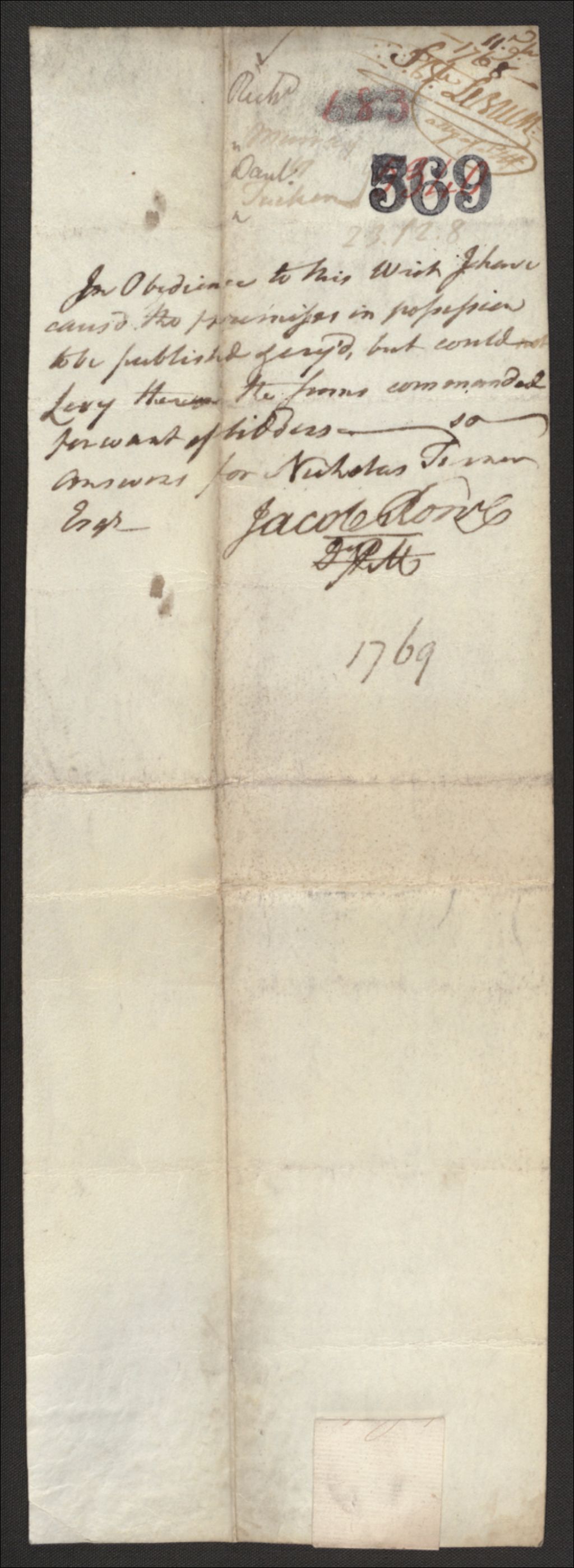 - Ce dossier en matières civiles provient de la Cour des plaidoyers communs. Il comprend une ordonnance d'exécution sur les biens de Daniel Tucker, au profit de Richard Murray, et un reçu à la suite de ladite exécution de sentence