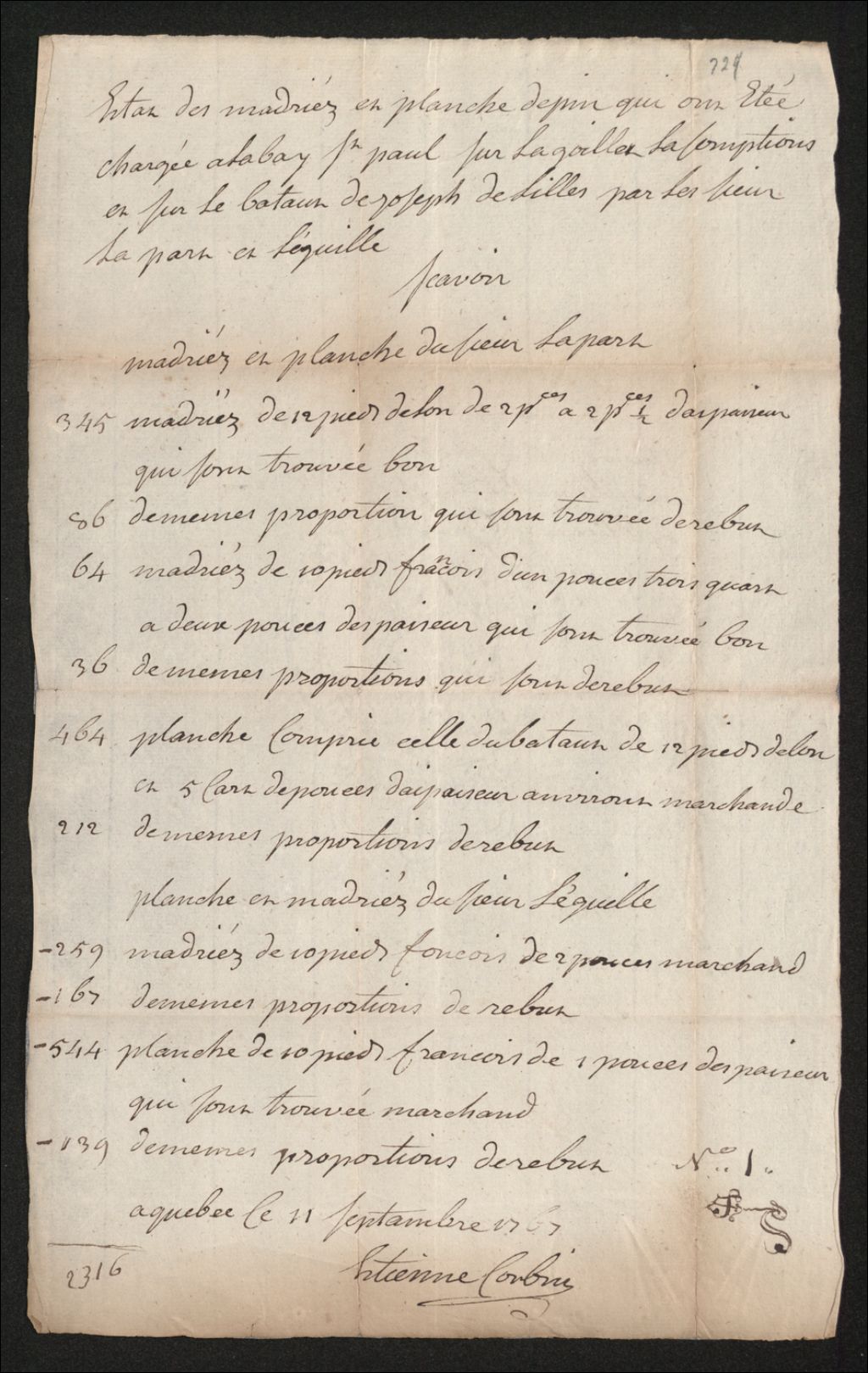 - Procès entre Elie La Parre (Laparre), négociant à Baie-Saint-Paul, d'une part, et Henri Boone, négociant demeurant à Québec, d'autre part, à propos du paiement de deux obligations au montant de 1896 shillings courant et de l'annulation de la société que les deux parties avaient ensemble et de l'obligation entre les deux qui consiste en 1195 madriers de pin, 1821 planches et 719 bordages de merisier contenu dans le compte de ladite société, sinon le défendeur se doit de payer par provision une somme de 6250 shillings