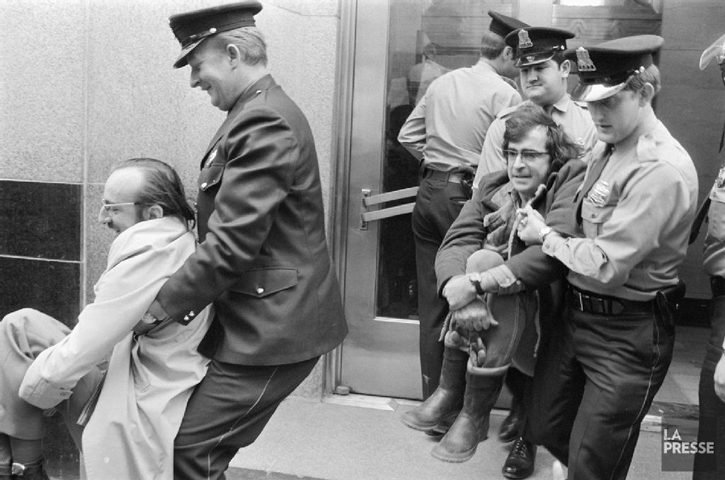 - Le dossier témoigne d'une manifestation des membres du Front commun devant les stations de radio CJMS et CKAC