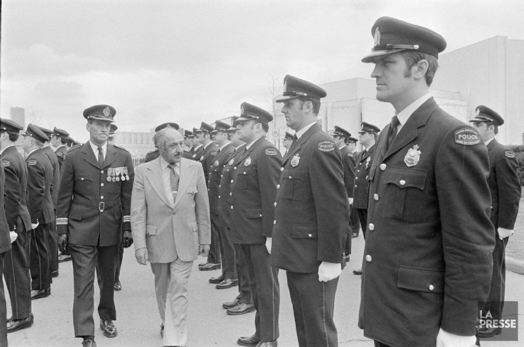 - Le dossier témoigne d'une cérémonie pour souligner la Semaine nationale de la police à la Cité du Havre. Les documents montrent notamment un contingent de policiers et une remise de certificats. Notons la présence d'une ancre à l'avant-plan sur certains négatifs