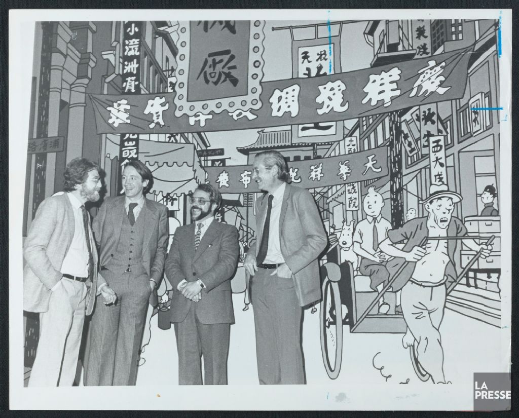 - Le dossier illustre, entre autres, des murales de dessins de Tintin; et une exposition sur Tintin au Complexe Desjardins. On reconnaît notamment Alain Baran, secrétaire personnel de Hergé, et Michel Demaret, dessinateur au studio Hergé