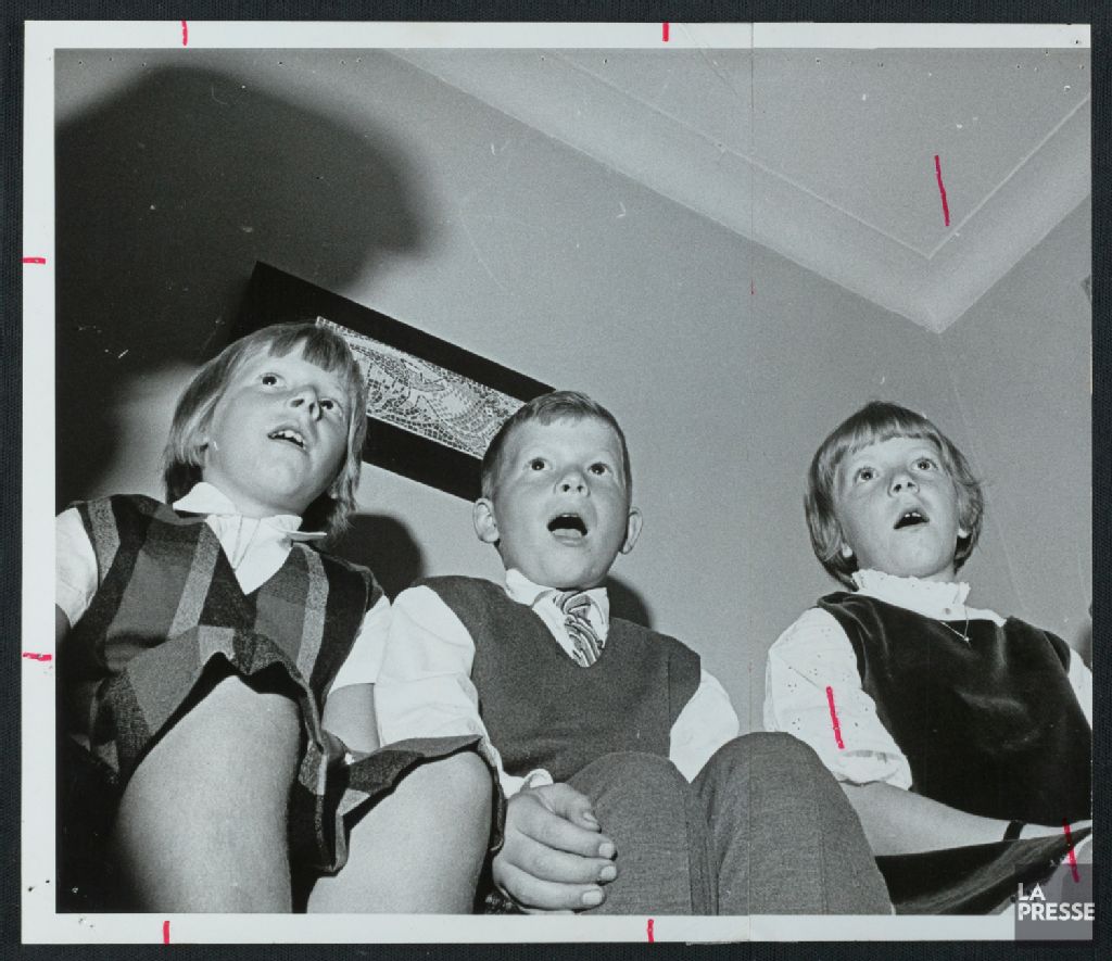 - Le dossier illustre des familles et des enfants qui regardent la télévision
