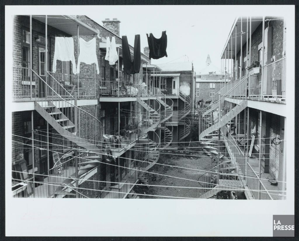- Le dossier illustre une ruelle et des façades de maisons mettant l'accent sur les escaliers extérieurs. Il porte également sur des jardins potagers et une photographie montre l'église Saint-Alphonse d'Youville vue de la rue Saint-Gérard