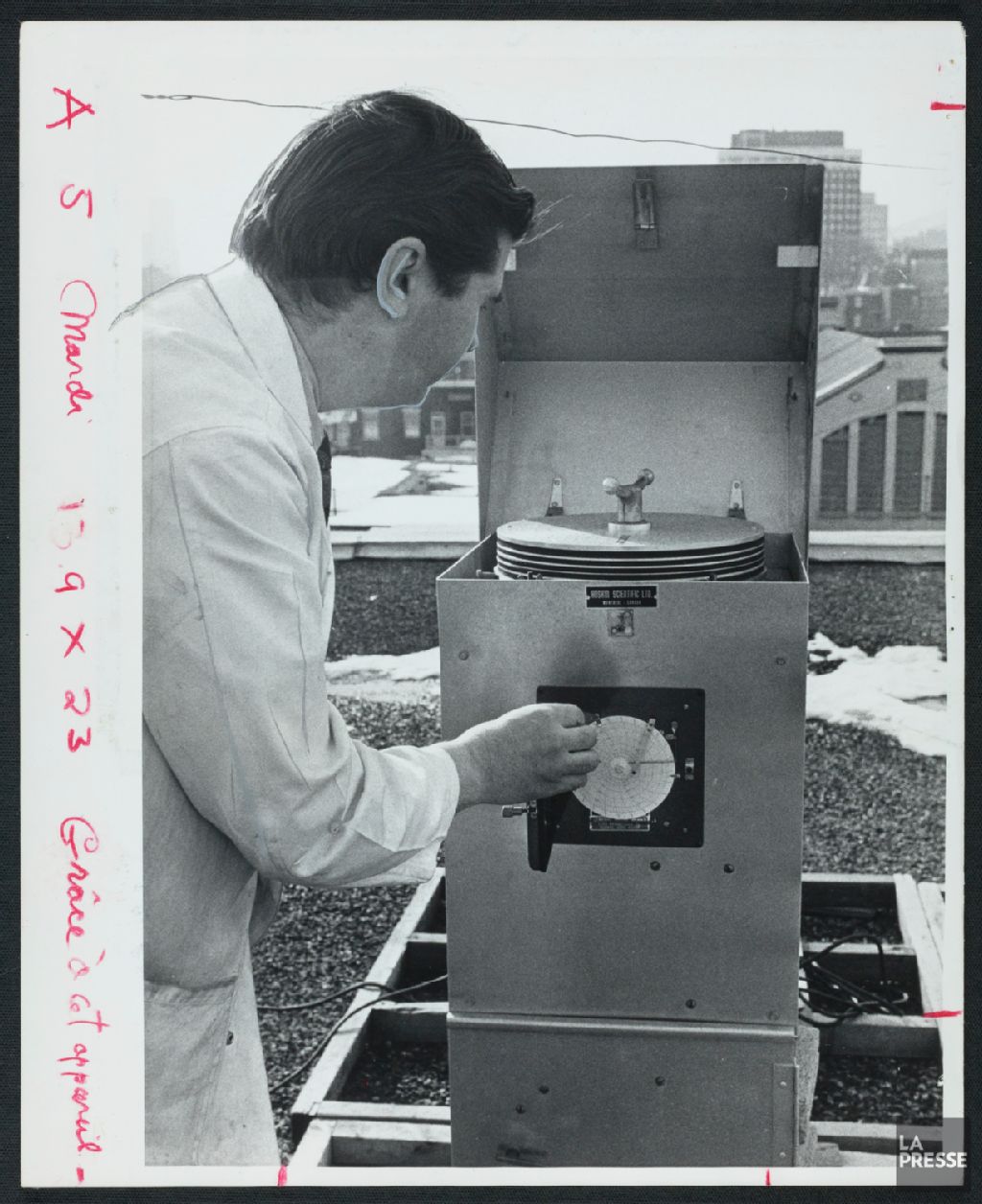 - Le dossier illustre notamment Montréal par jours de brouillard; des manifestations pour sensibiliser à la question de la pollution de l¿air; et l¿analyse d¿un échantillon d¿air par un technicien du laboratoire du service de l¿assainissement de l¿air