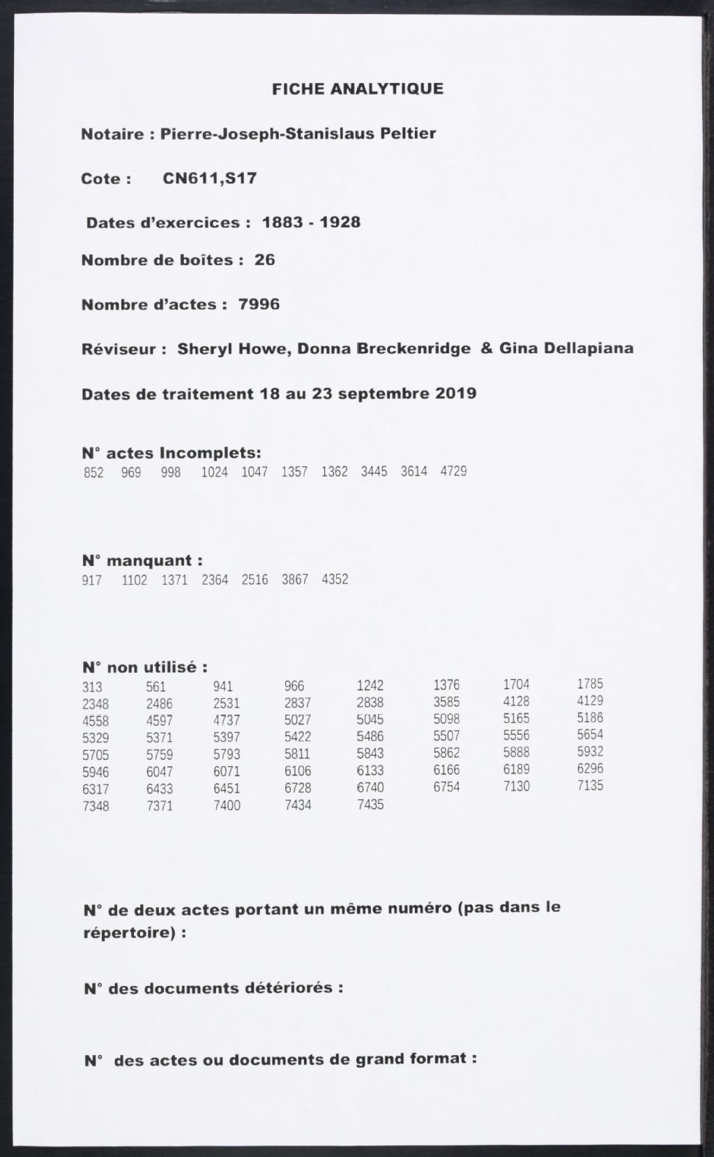 Pierre-Joseph-Stanislas Peltier, 1880-1928, Archives nationales à Montréal, Fonds Cour supérieure. District judiciaire de Bedford. Greffes de notaires, (06M,CN611,S17).