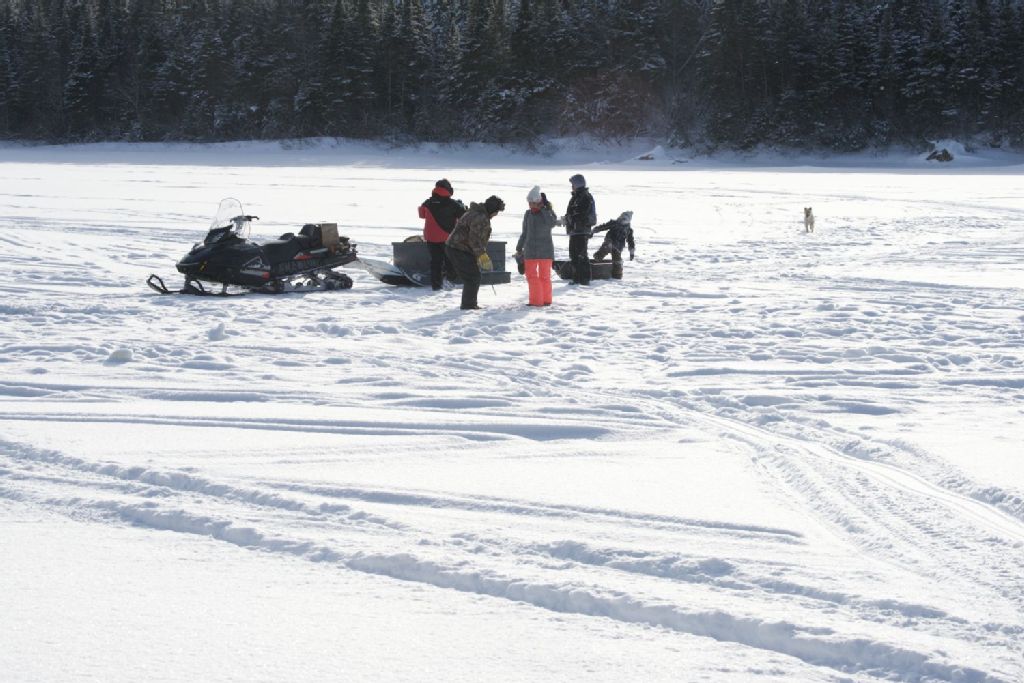 - Le dossier contient des photographies qui témoignent d'une famille pratiquant la pêche traditionnelle sur la glace.