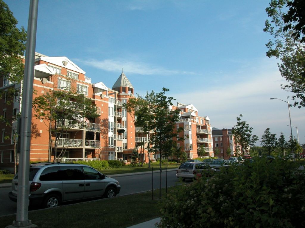 La photographie témoigne d'un immeuble d'habitation sur l'avenue des Compagnons à Québec.
