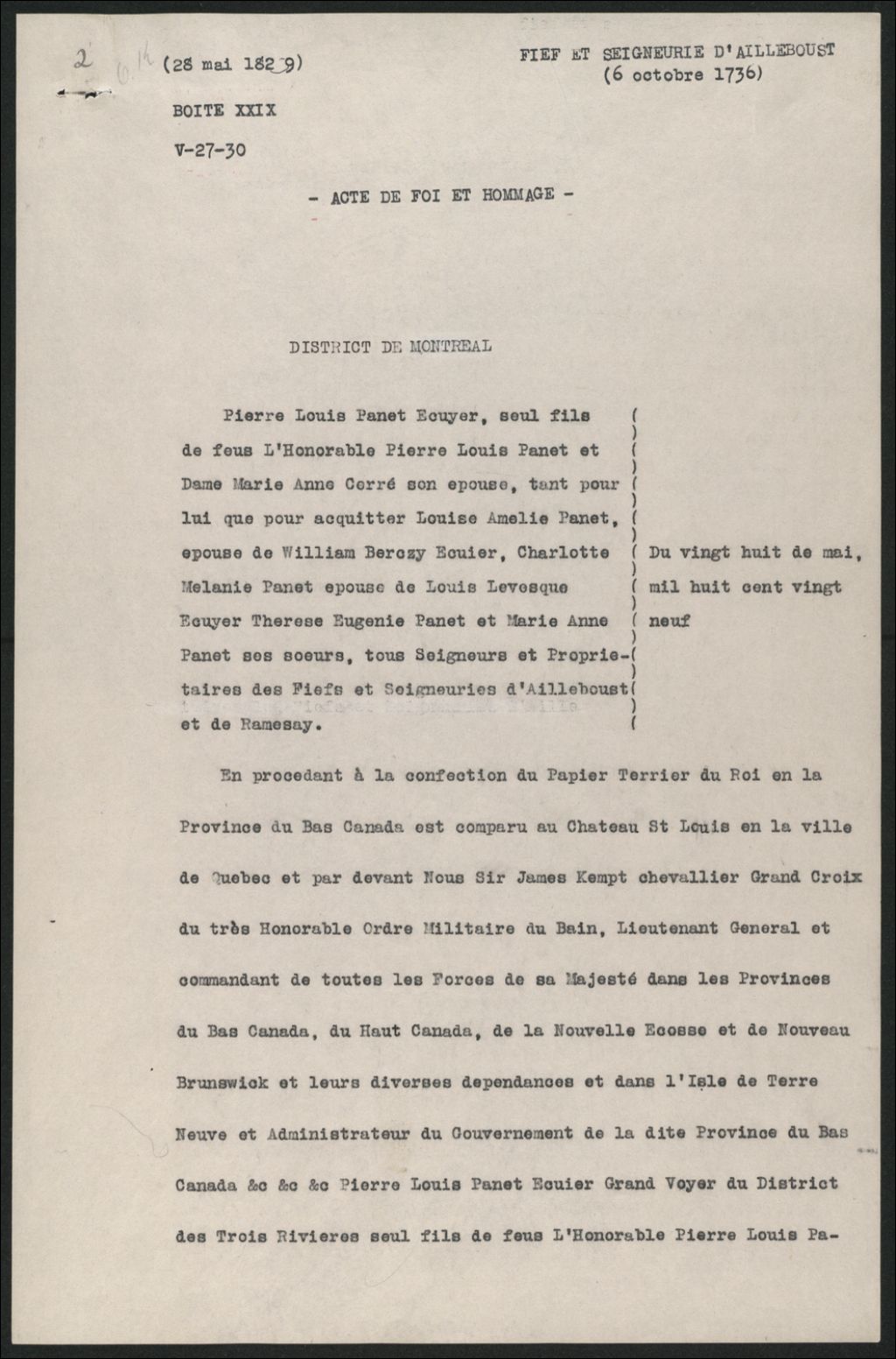- Copie dactylographiée en [19-] (original créé le 28 mai 1829)
