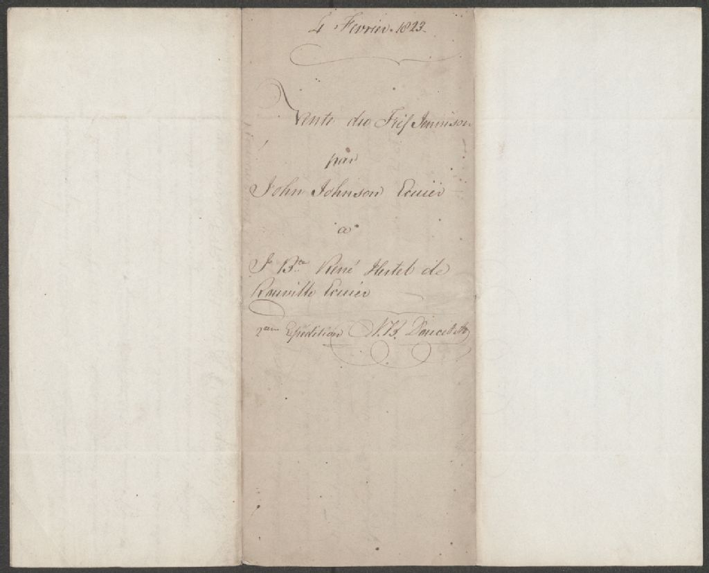 Vente par John Johnson à Jean-Baptiste-René Hertel de Rouville : Fief Jennison., 4 février 1823, Archives nationales à Québec, Collection Seigneuries, (03Q,P240,D53,P23).