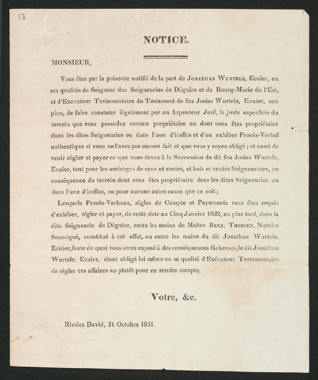 Avis de Jonathan Wurtele : Arpentage.