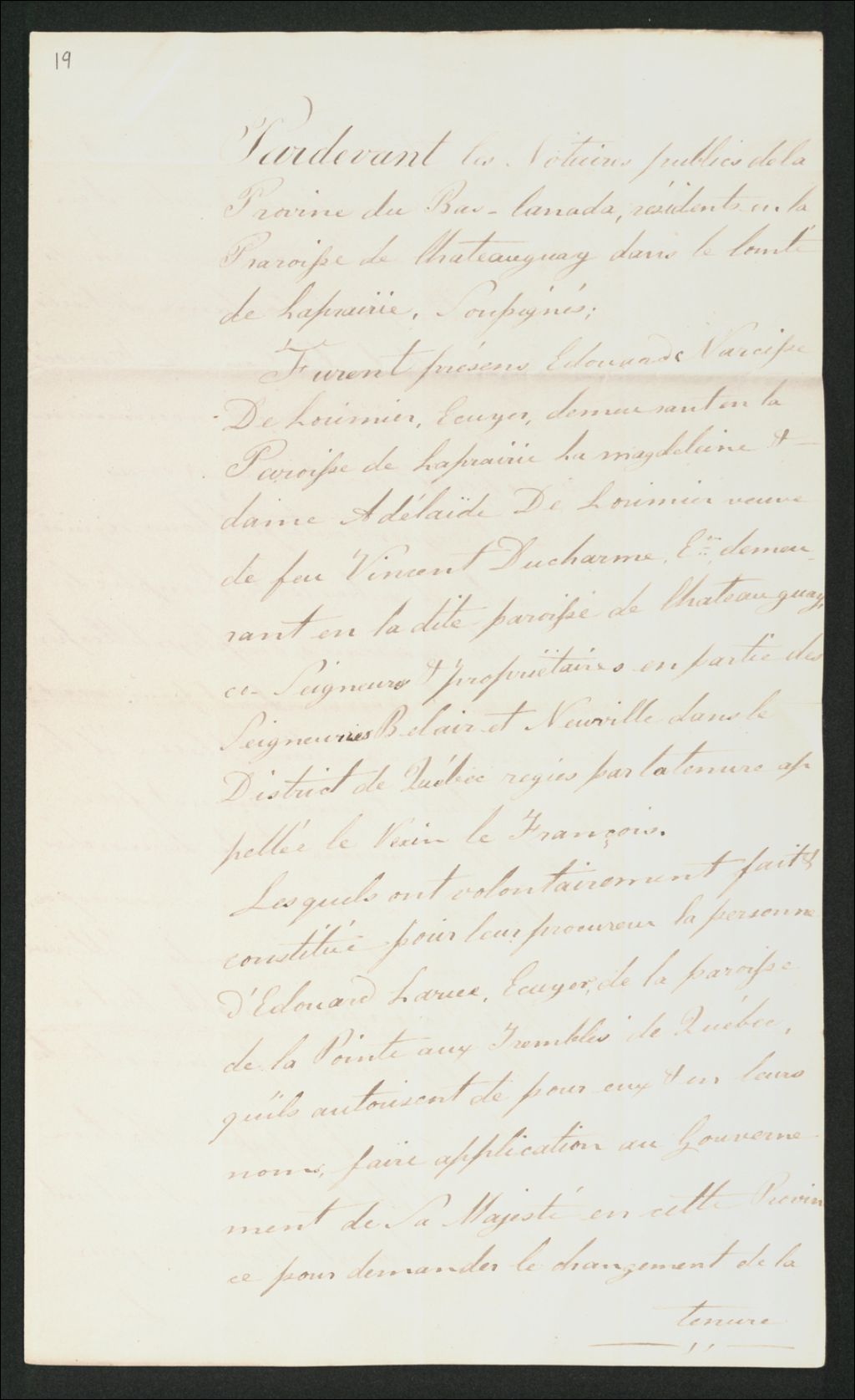 - Procuration par Édouard Narcisse de Lorimier à Édouard Larue.