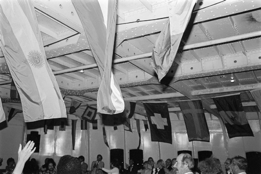 Réception sur la bateau Louis Joliette avec les consuls et le premier ministre René Lévesque, 1979-06-24, Archives nationales à Québec, Fonds Ministère des Communications, (03Q,E10,S44,SS1,D79-570), Claude Gaboury.