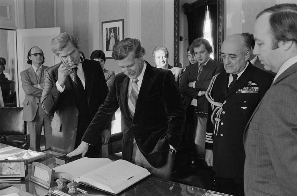 Assermentation de Marcel Léger comme ministre de l'Environnement chez le lieutenant-gouverneur Jean-Pierre Côté, 1979-11-29, Archives nationales à Québec, Fonds Ministère des Communications, (03Q,E10,S44,SS1,D79-964), Bernard Vallée.