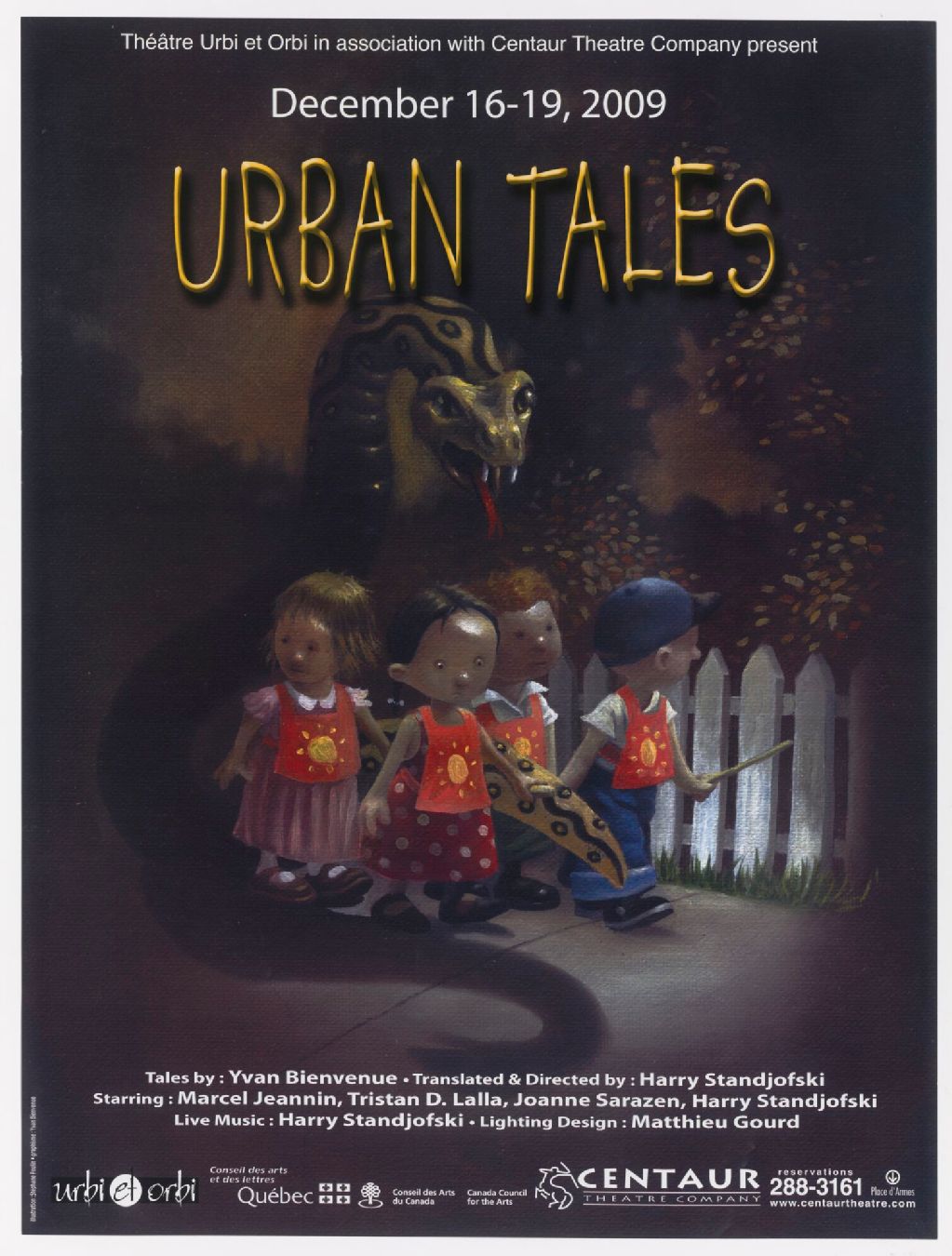 Théâtre Urbi et Orbi in association with Centaur Theatre Company present ... Urban tales, tales by Yvan Bienvenue ... starring Marcel Jeannin, Tristan D. Lalla, Joanne Sarazen ...