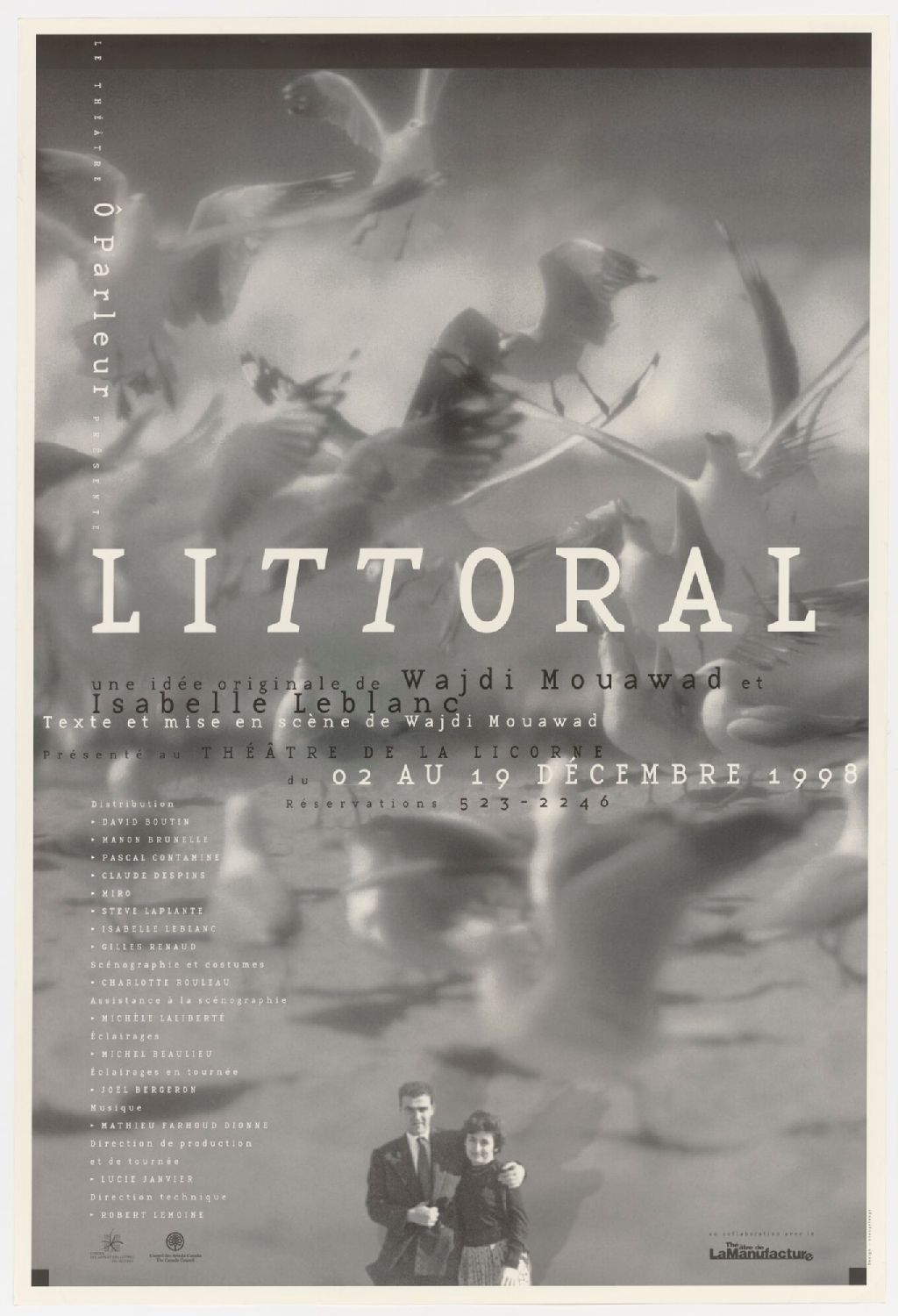 Le Théâtre Ô parleur présente Littoral, une idée originale de Wajdi Mouawad et Isabelle Leblanc, texte et mise en scène de Wajdi Mouawad ... distribution David Boutin, Manon Brunelle, Pascal Contamine ...