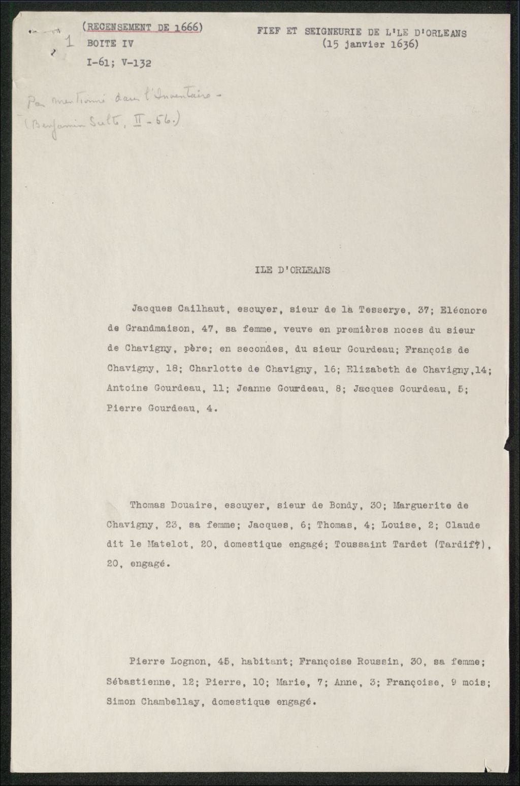 - Recensement, 1666.