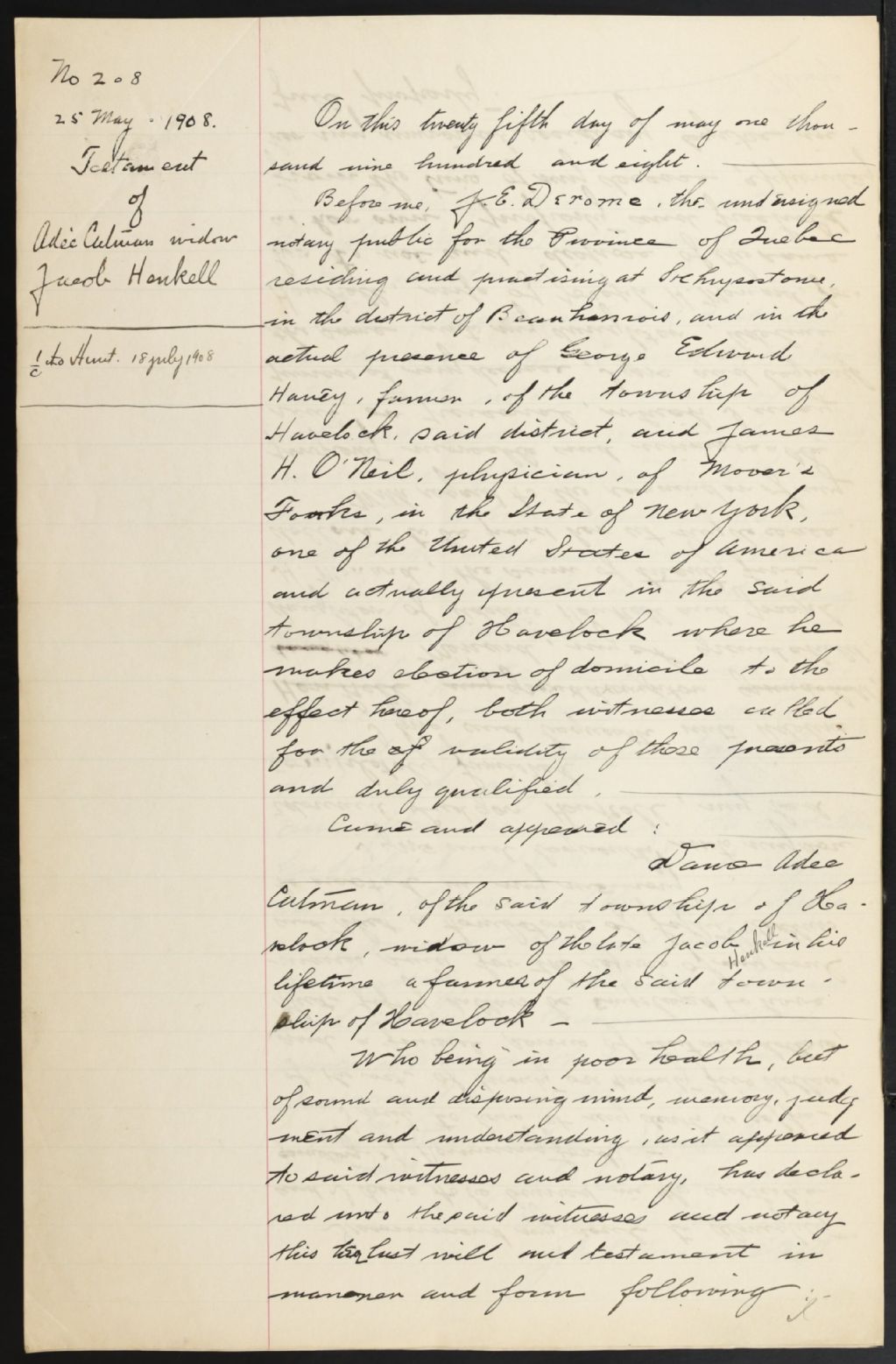 Joseph Pierre Ernest Derome, 1907-1927, Archives nationales à Montréal, Fonds Cour supérieure. District judiciaire de Beauharnois. Greffes de notaires, (06M,CN607,S62).