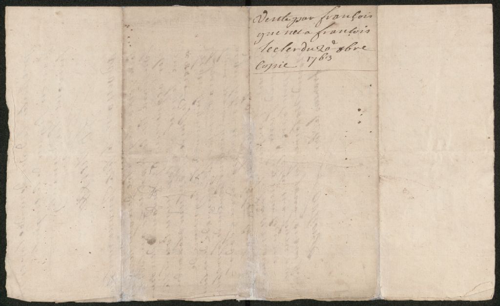 Vente par François Guenes (Guenette) à François Leclerc, 20 octobre 1763, Archives nationales à Québec, Collection Seigneuries, (03Q,P240,D201,P3).