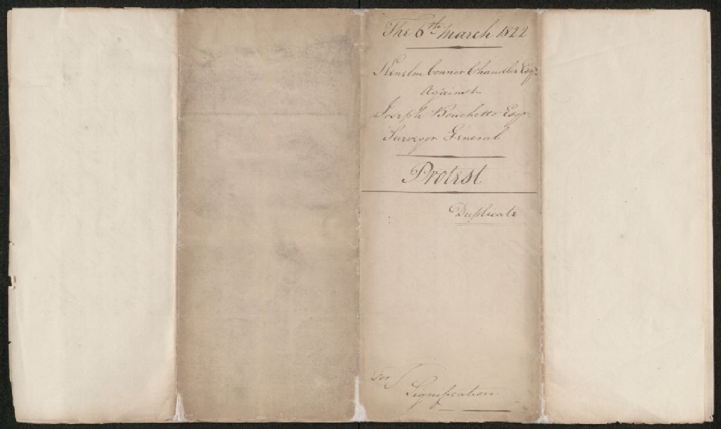 Protêt de Kenelm Conor Chandler contre Joseph Bouchette