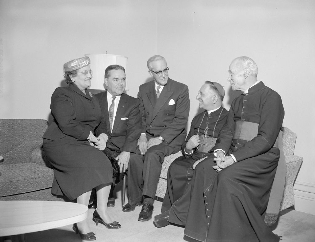 Réception en l'honneur de Mgr Panico, 13 février 1959, Archives nationales à Gatineau, Fonds Champlain Marcil, (07H,P174,S1,D16287), Attribuée à Champlain Marcil.