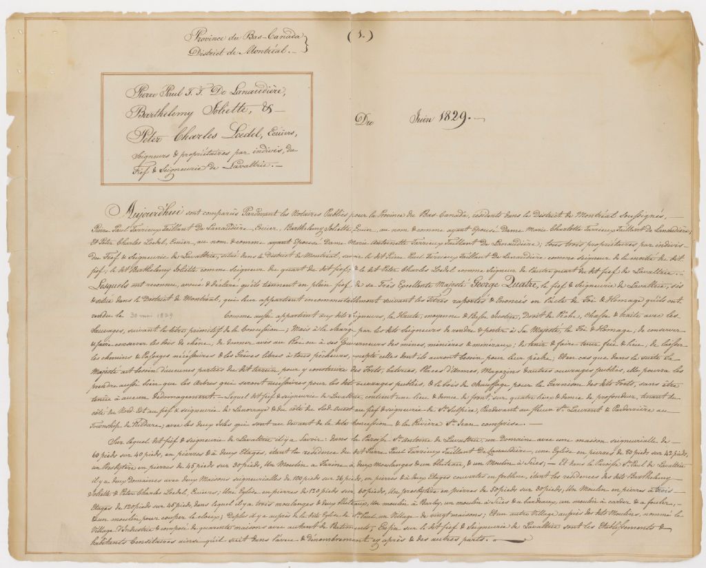 Seigneurie de Lavaltrie - Aveu et dénombrement de Pierre-Paul de Lanaudière, Barthelemy Joliette et Peter Charles Loedel