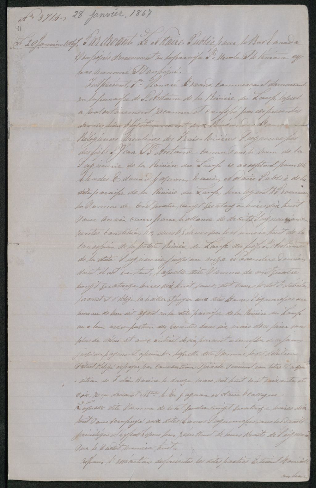 Obligation par Honoré Durand aux Ursulines de Trois-Rivières, 28 janvier 1867, Archives nationales à Québec, Collection Seigneuries, (03Q,P240,D248,P41).