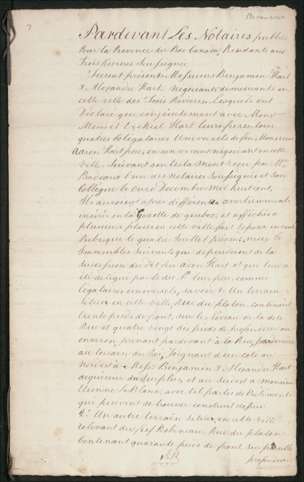 - Vente et cession par Benjamin Hart et Alexandre Hart à Ezechiel Hart