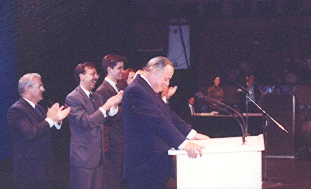 Campagne électorale de 1989, Numérisées en 2003, 2004, 2006, 2008 (originaux créés en 1989), Archives nationales à Québec, Fonds Parti Québécois, (03Q,P532,S44,D477), Photographe non identifié.