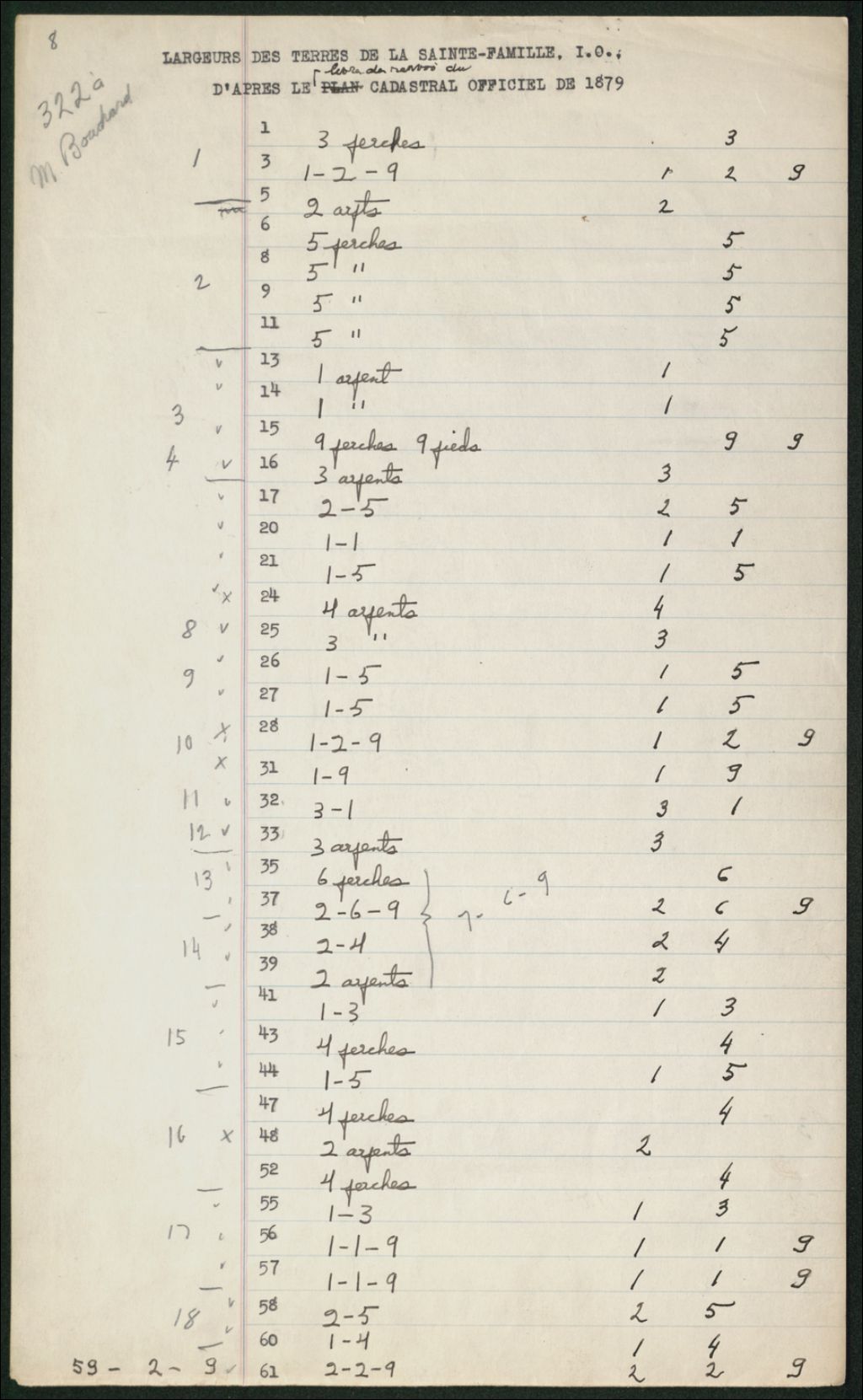 Documents de travail : Largueur des terres selon le plan cadastral de 1879