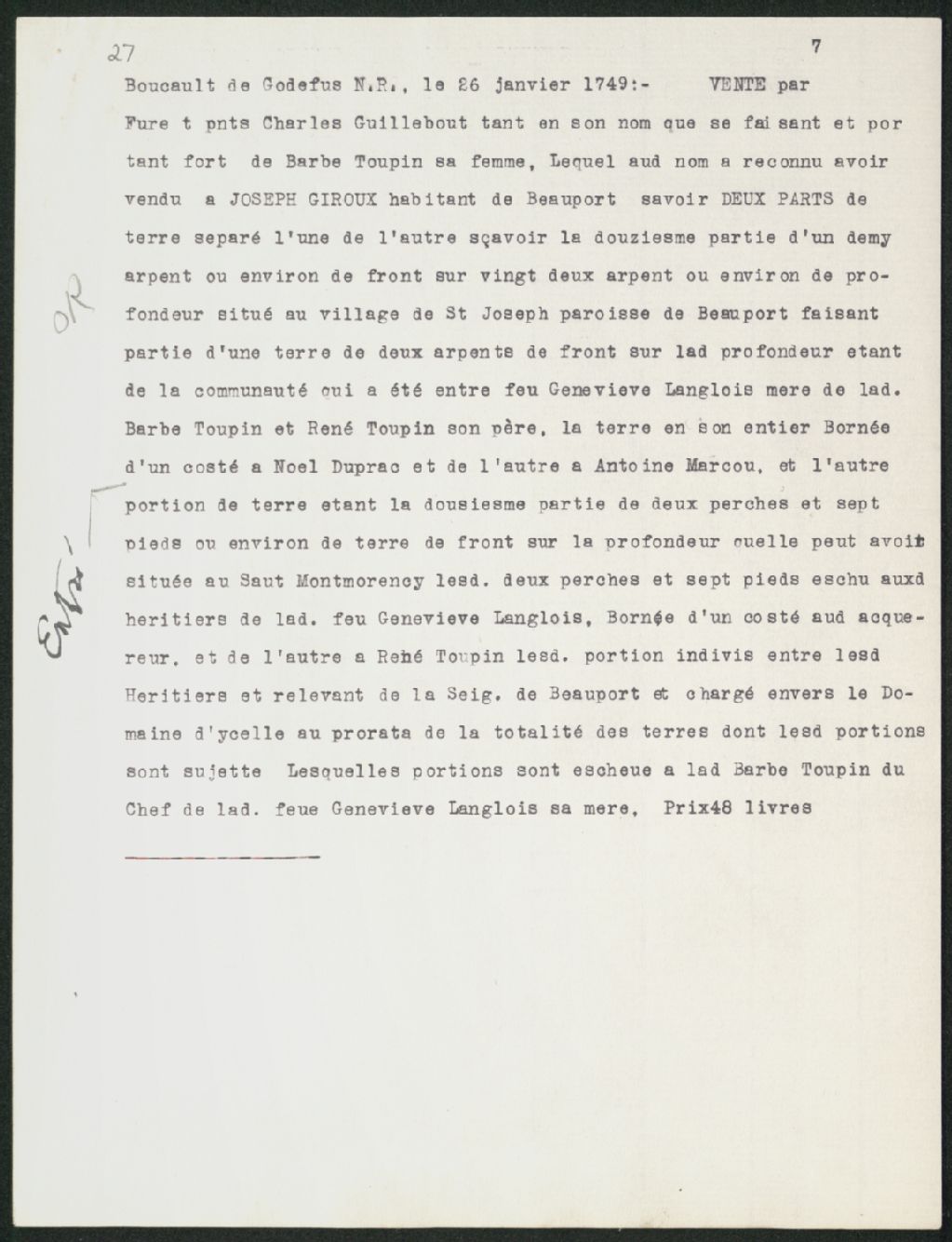 Vente par Charles Guillebout et Barbe Toupin à Joseph Giroux